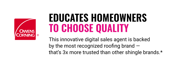 Imagine not just responding to leads, but closing deals even when you're closed. Scout helps homeowners customize and sign a proposal for a complete Owens Corning® Total Protection Roofing System®^. Any day. Any time.